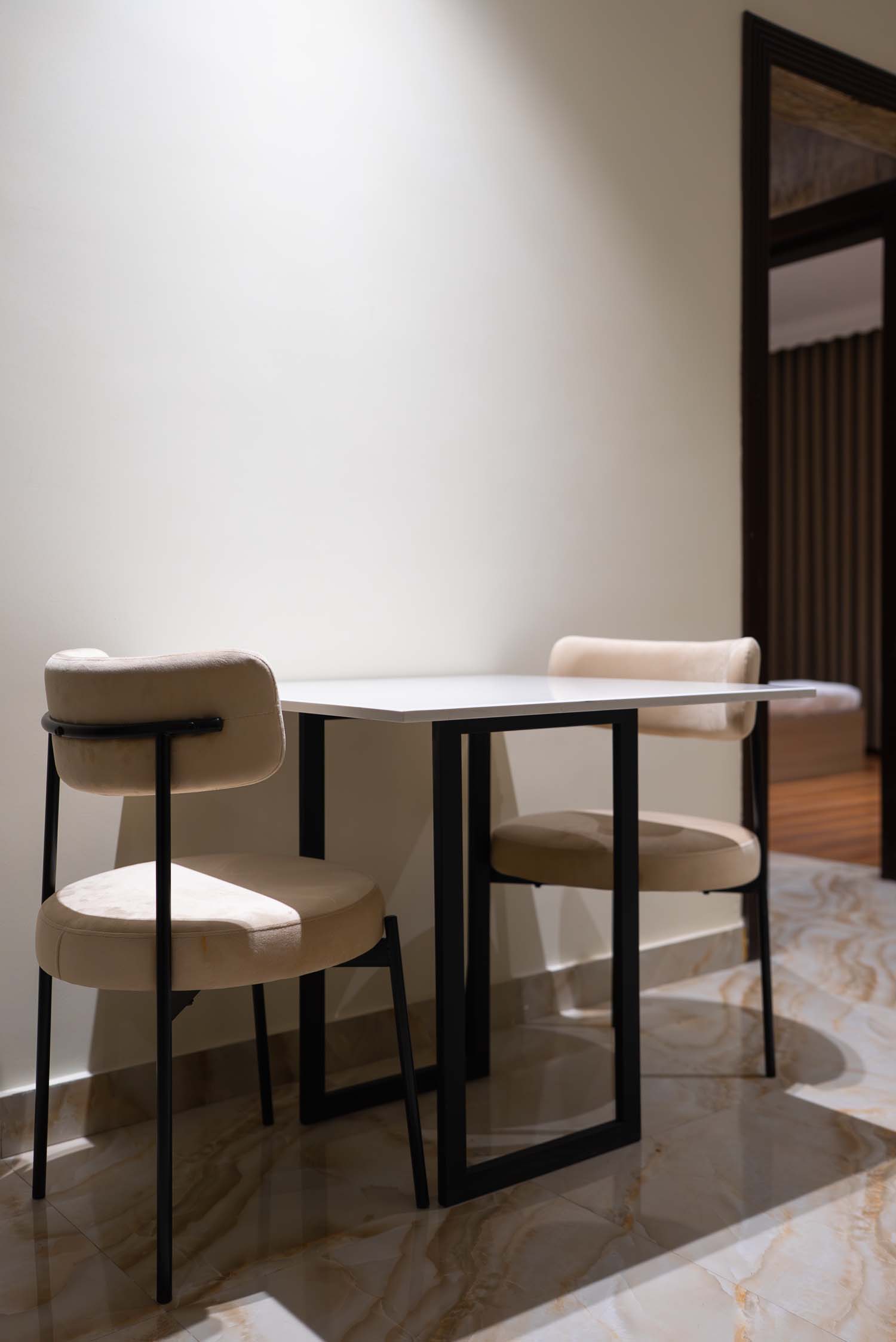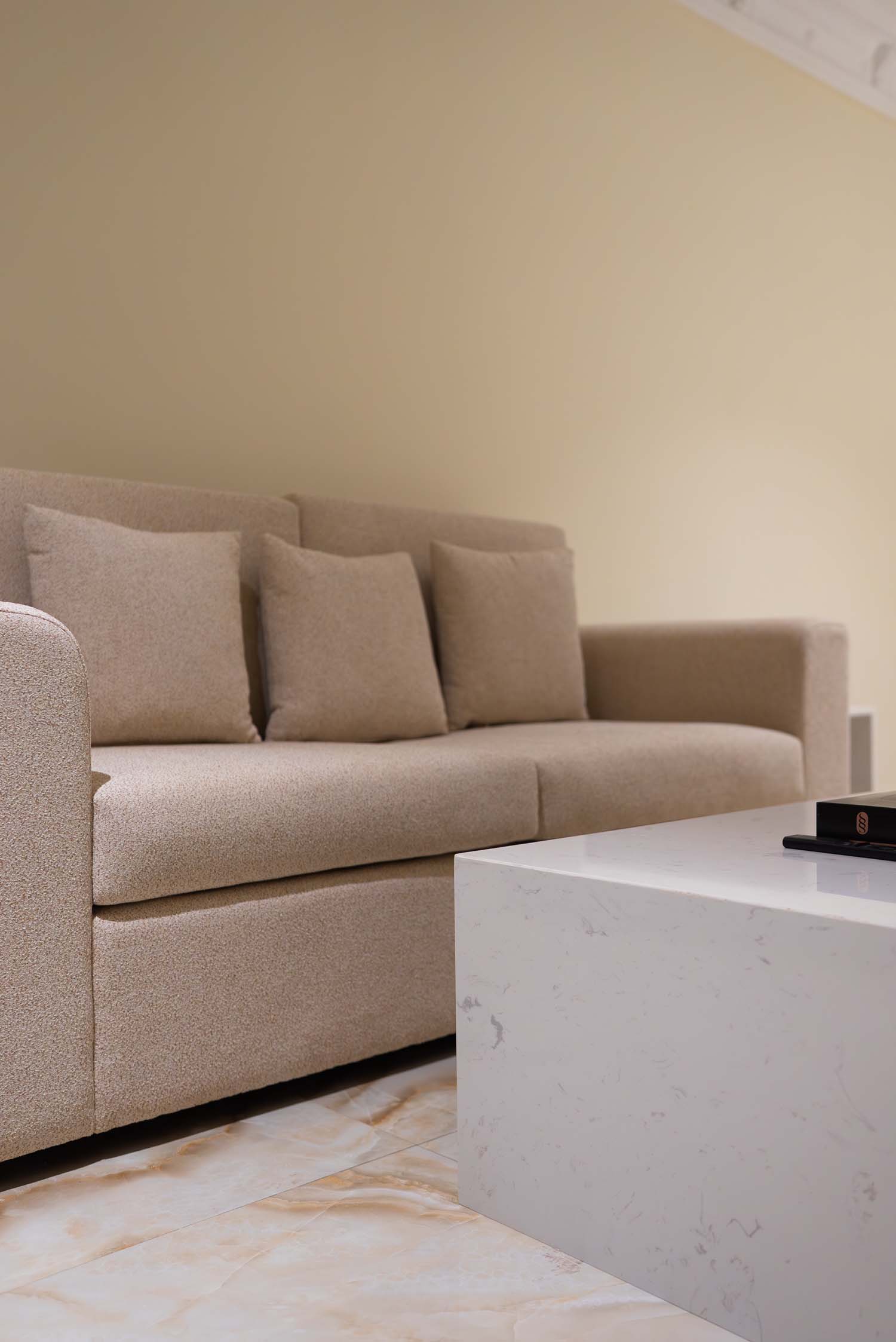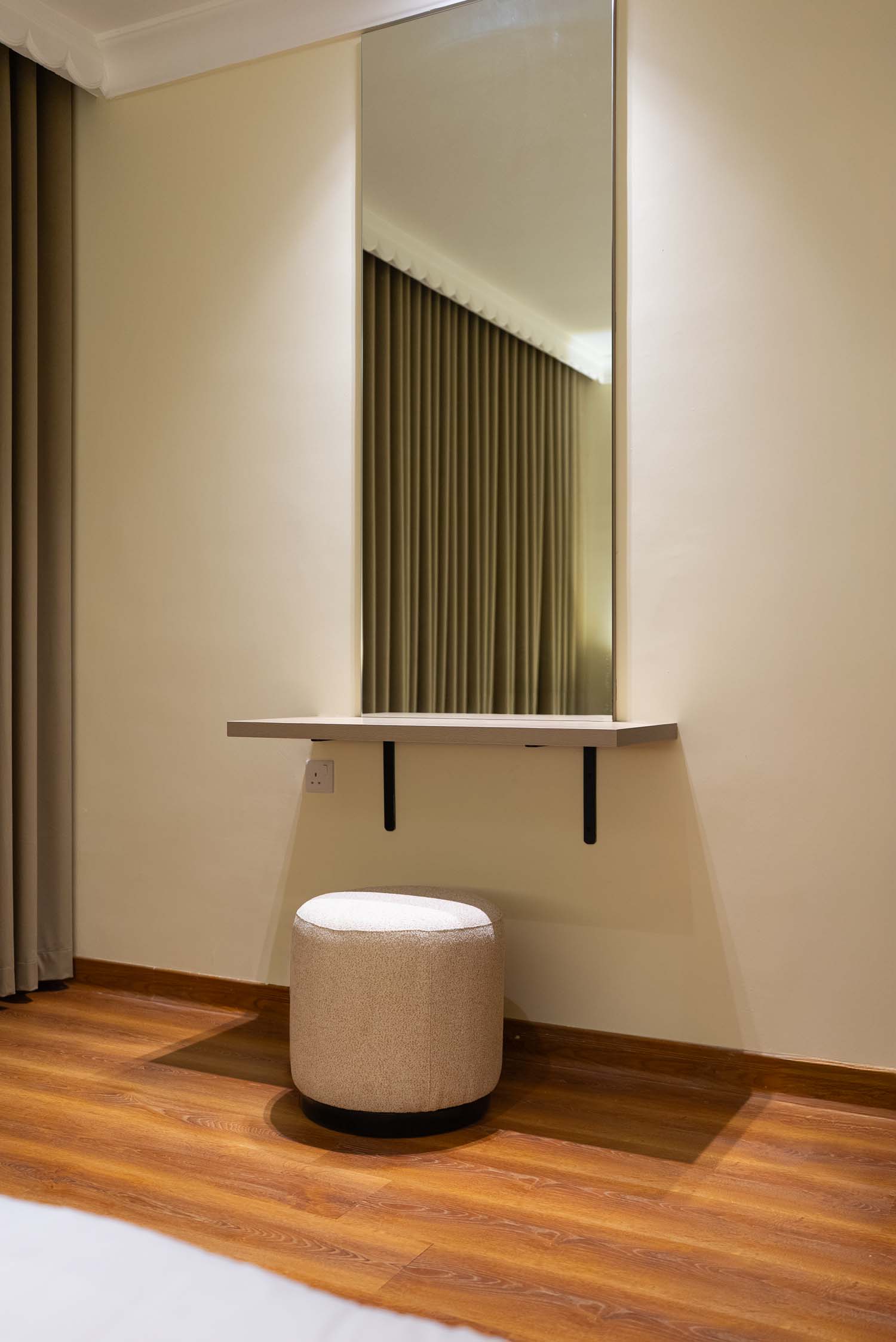 Full interior fit-out for Sara Plaza Hotel covering 56 guest rooms, living areas, and dining spaces across eight floors.
