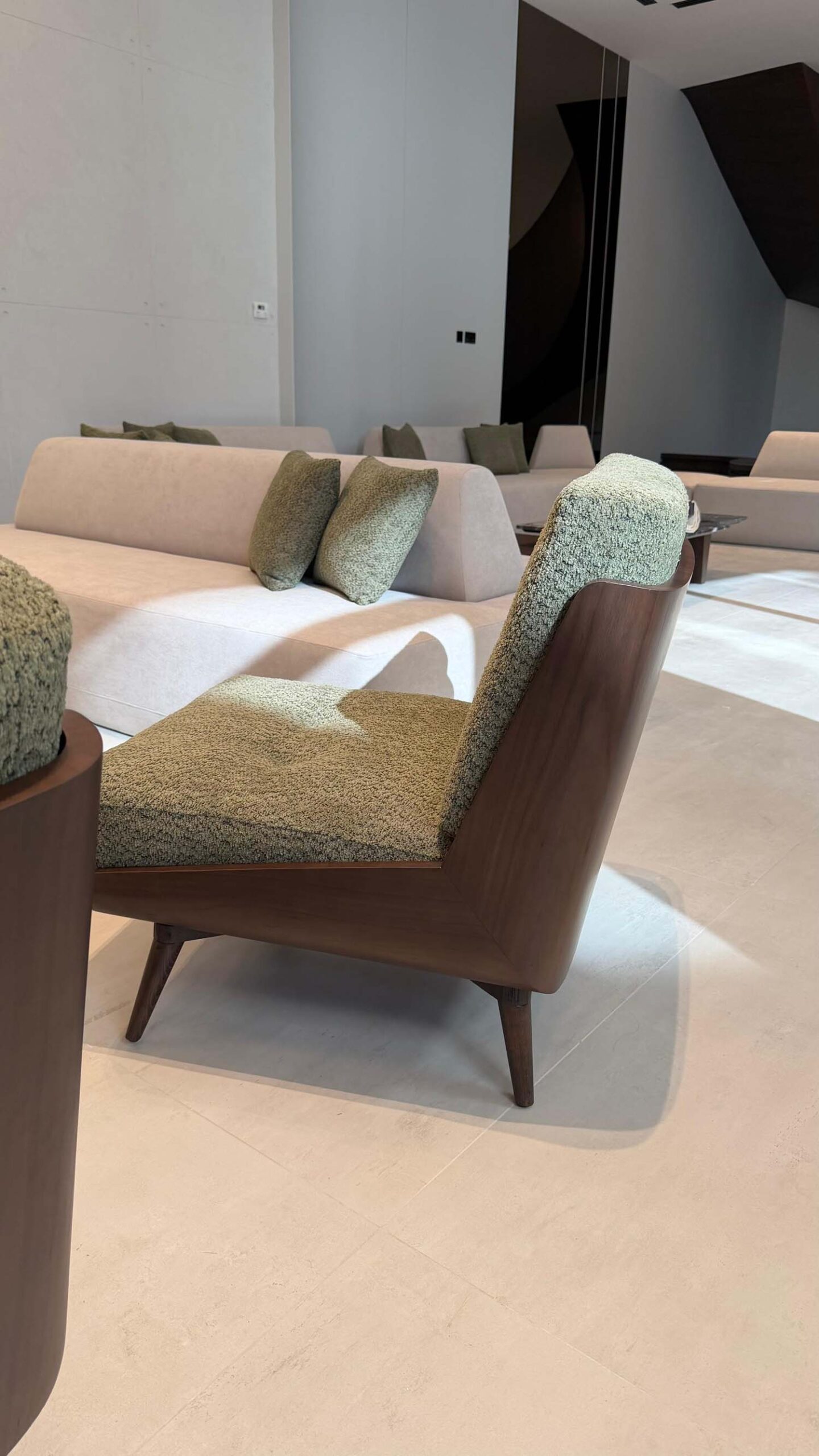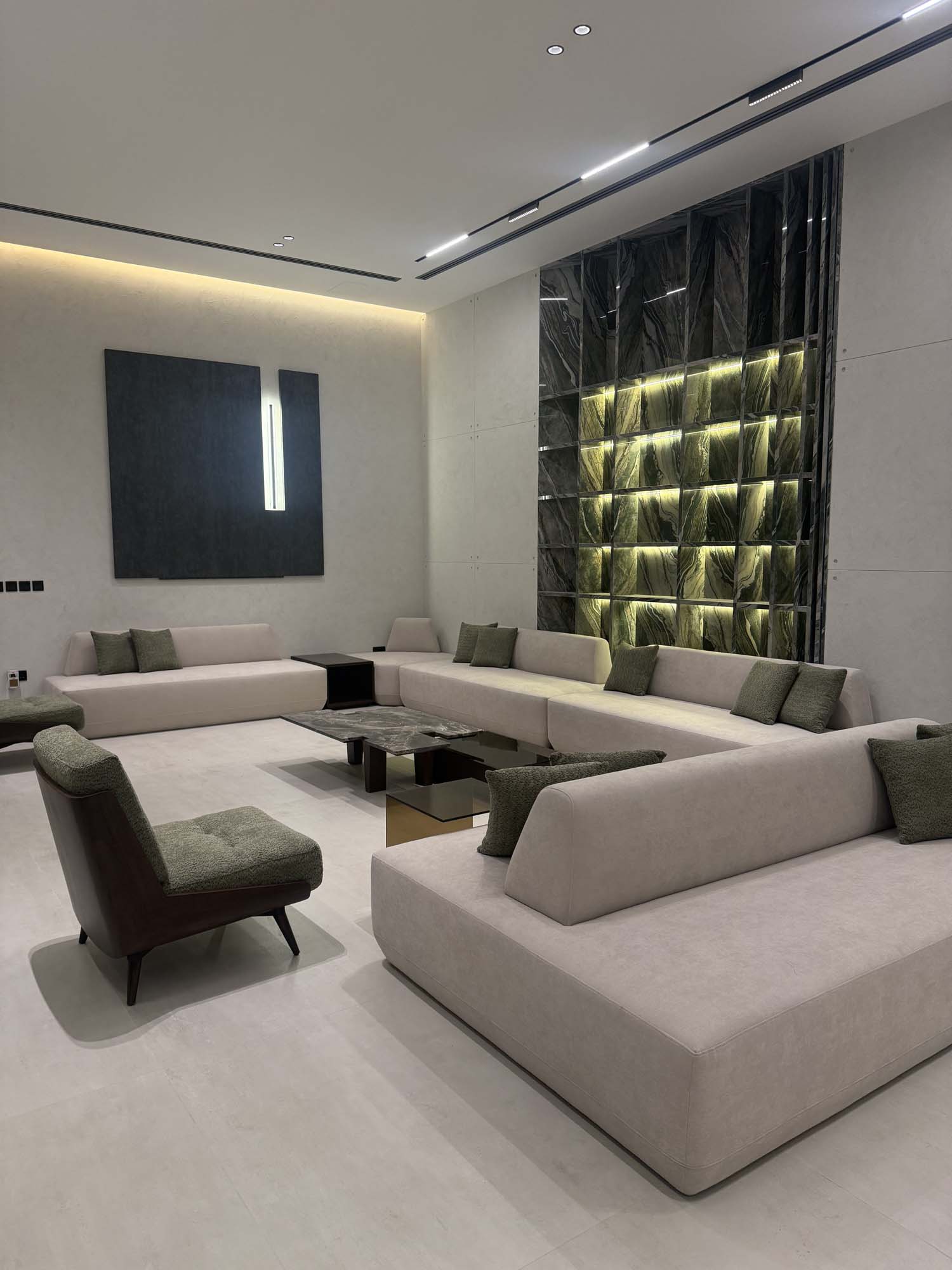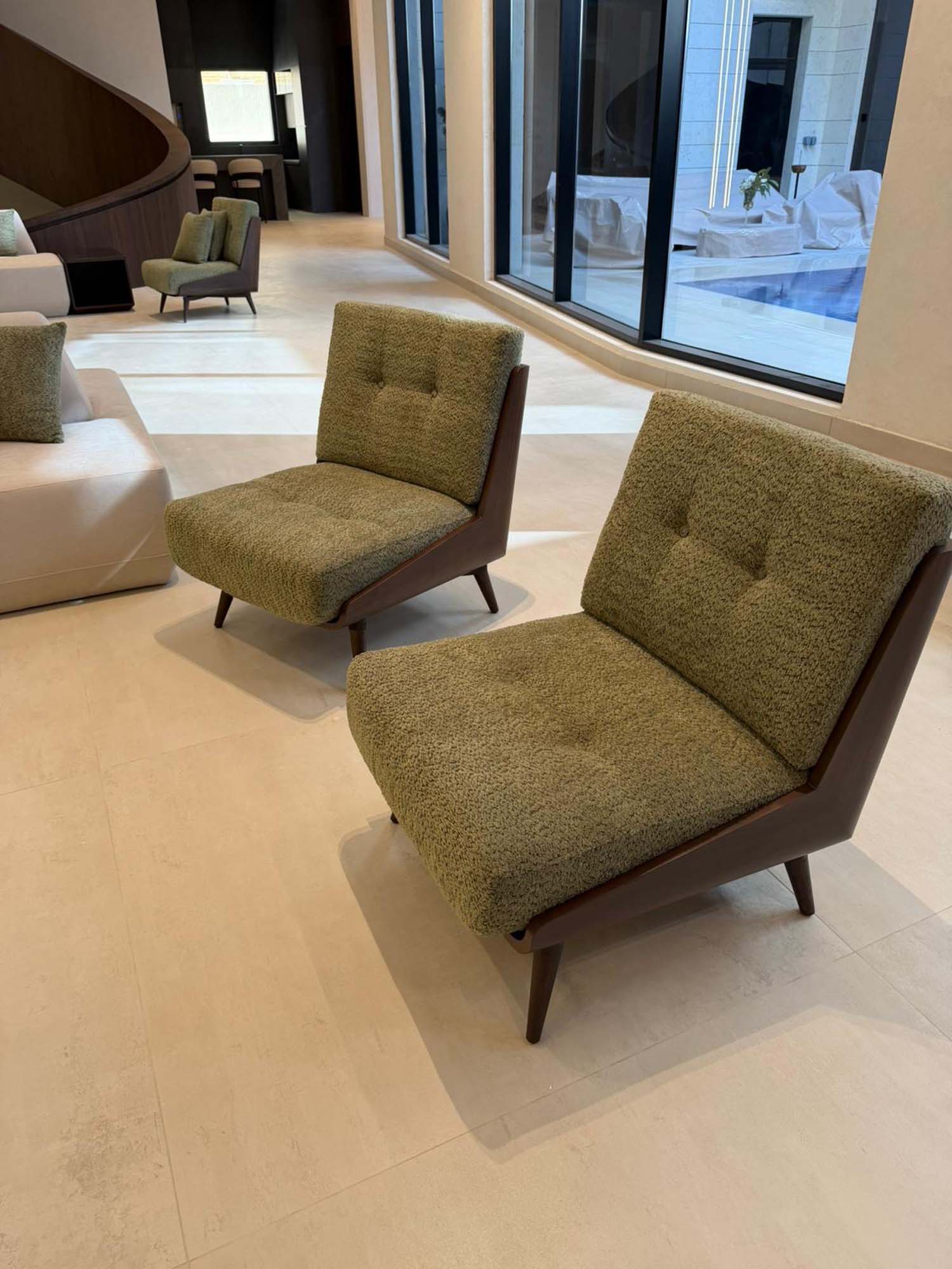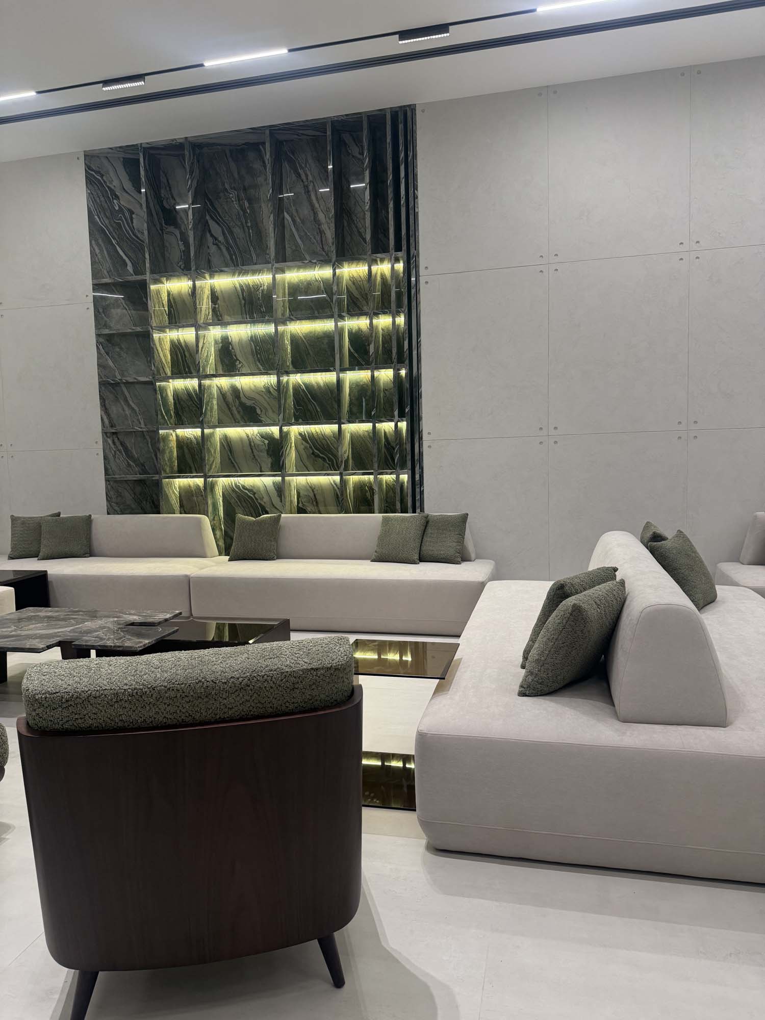 Complete interior finishing with custom woodwork, wall panels, kitchen installation, handrail, and bespoke furniture.